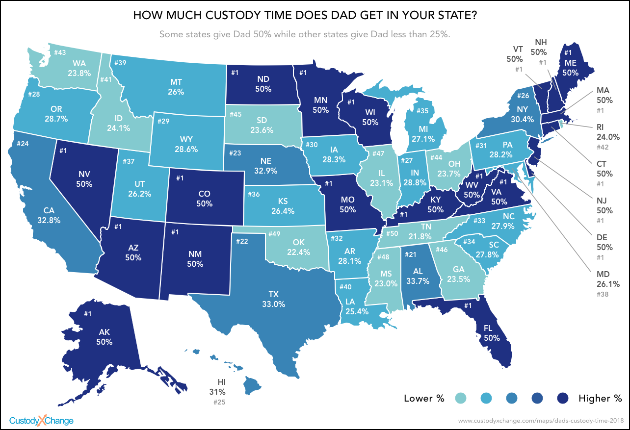 A first-of-its-kind study conducted by CustodyXChange finds that what state a dad lives in can heavily influence what kind of custody decision will be made.